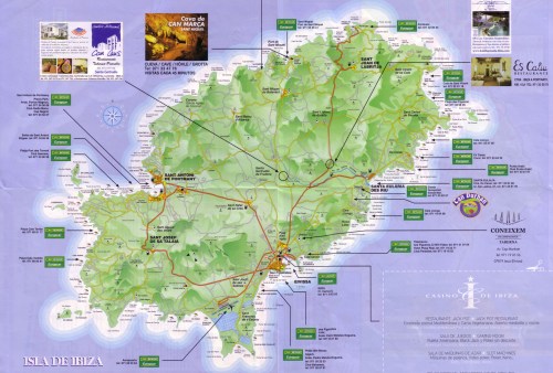 Подробная Интерактивная Карта Острова Ибица Ibiza ,пляжи,заправки,аренда автомобилей.