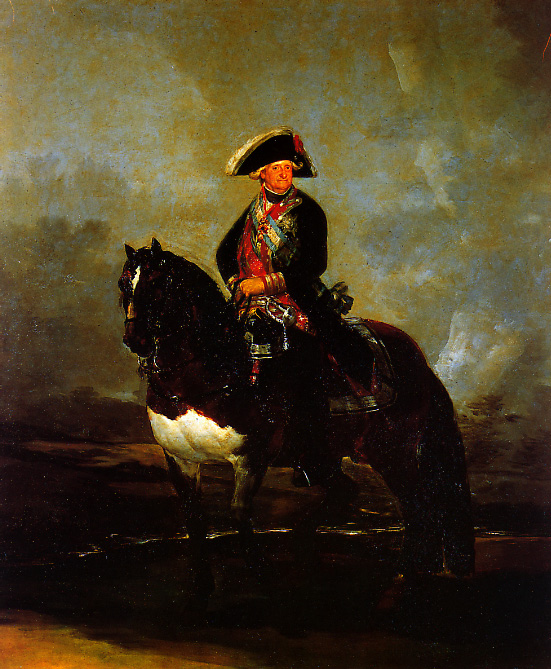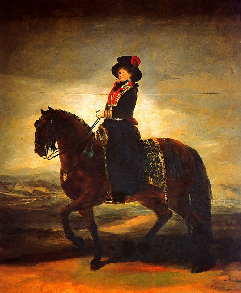 Два из 3-х первых портретов Франсиско Гойи , которые в 1819 году были выставлены в Музее Прадо, конные портреты Короля Карла IV  Королевы Испании Марии Луизы