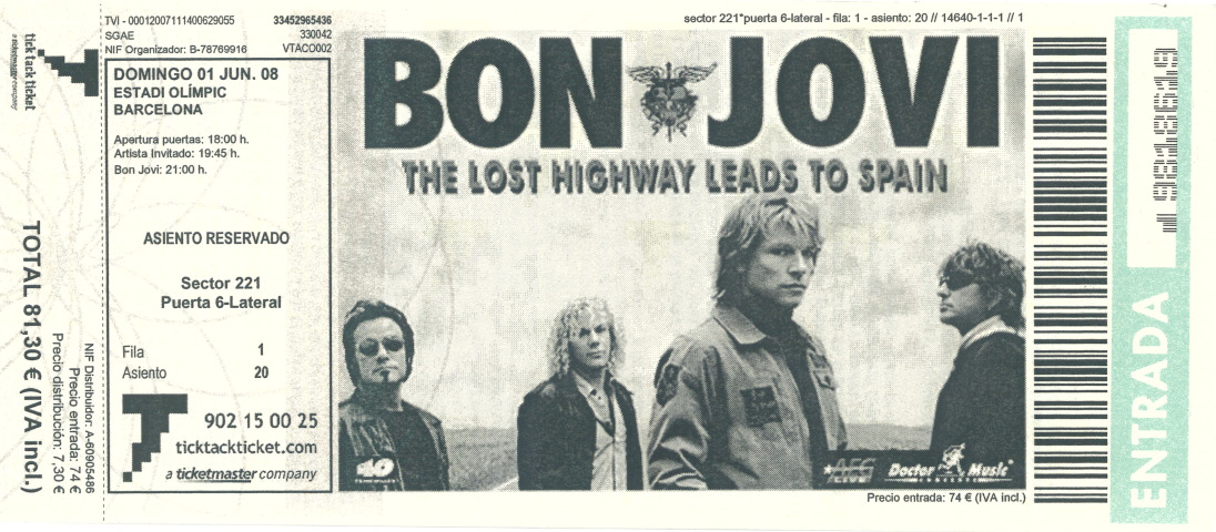 Билеты на концерт Бон Джови Bon Jovi 27 июля 2011 года на Олимпийском Стадионе в Барселоне Estadio Olímpico de Barcelona