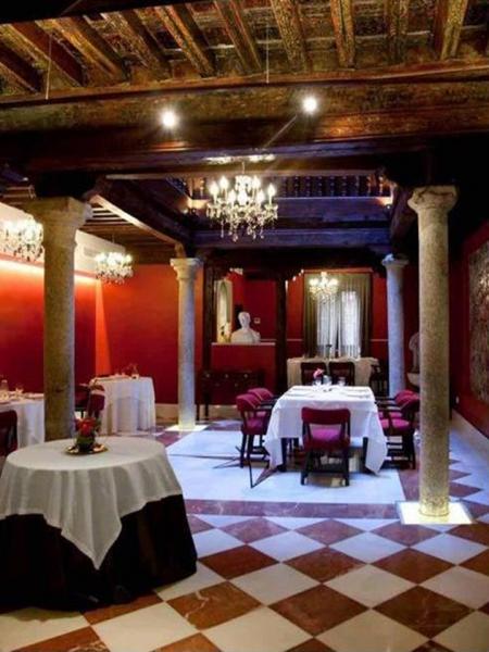 Ресторан расположен в доме , который построен в XVI века. В ресторане Адольфо Adolfo местная, кастильская кухня , вам предложат запеченного молочного поросенка в собственном соку, молодого барашка, а также блюда собственного охотничьего хозяйства семьи Адольфо мясо косули, хамон не только традиционный из свинины, но и из косули, мясо куропатки. Супы гаспачо и кастильский суп, сопа кастельяна, и очень много испанских закусок тапас, различные морепродукты и рыба приготовленная по старым кастильским рецептам. Ресторан Адольфо гордится своими десертами, а особенно рецептами марцепанов, которые выпекают в Толедо более 1000 лет. Обед и ужин с хорошим коллекционным вином вам обойдется 50-100 евро на человека , для Испании это считается дорогой ресторан, по московским меркам не очень… Ресторан работает днем в обед с 13:00 до 16:00 часов, вечером в ужин с 20:00 до 24:00 часов, ресторан не очень большой на 79 мест, поэтому лучше все заказывать заранее.