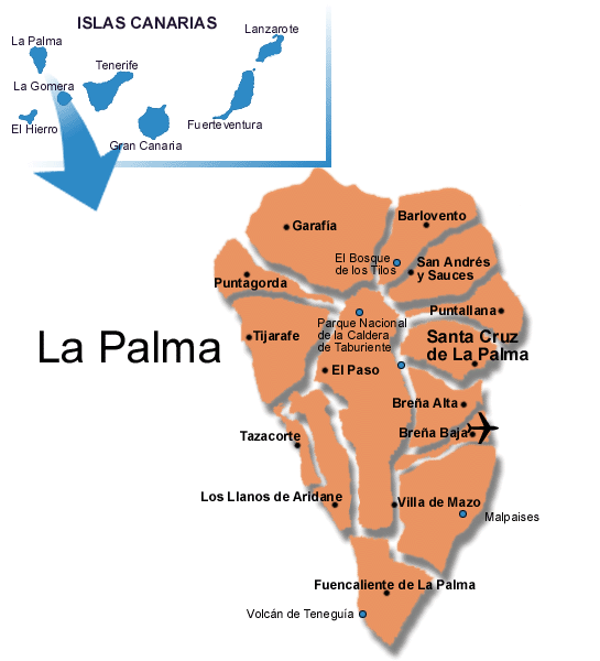Мы предлагаем обзорную экскурсию по острову Ла Пальма с русскоязычным гидом и переводчиком , продолжительность экскурсии 2 дня, и пешеходную экскрсию по столице острова Ла Пальма La Palma по городу Санта Крус де ла Пальма Santa Cruz de La Palma , продолжительность экскурсии 3-4 часа.