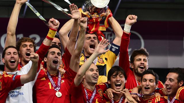 После вчерашней победы в финале Евро 2012 над Италией с разгромным счетом 4-0, Сборная Испании сегодня 2 июля 2012 возвращается в Мадрид. В 15.00 самолет Сборной Испании приземляется в Мадридском аэропорту Бараxас Barajas в терминале 4 , T4. Затем в 17.00  поздравления Короля в Королевском  Дворце   Паласио де ла Сарсуэла Palacio de la Zarzuela, потом поздравления премьер-министра Испании Мариано Рахоя Mariano Rajoy , во двореце Монклоа Palacio de la Moncloa. Затем по традиции сборная Испании отправится на открытом автобусе по улицам Мадрида, по маршруту Монклоа Moncloa, улица Принцесса la calle Princesa, Площадь Испании la Plaza de España, Гран Вия Gran Vía, Алкала Alcalá  и Сибелес Cibeles, на Площади Сибелес Plaza Cibeles установлена огромная сцена и большие экраны , где вчера можно было посмотреть матч Испания-Италия. В 18.30 начнется концерт с участием испанских звезд Пилар Рубио Pilar Rubio , Давид Бисбаль  David Bisbal,  Давид  Бустаманте David Bustamante и Ченоа Chenoa.