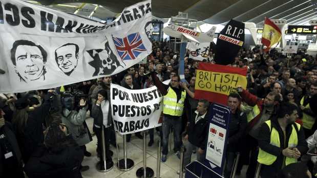 Как вы видите на плакате у бастующиx лозунг «British go home», одно из требований работников Иберии убрать из Испании английские и ирландские авиакомпании «Low Cost», но понятно руководство компании и даже правительство Испании это сделать не могут.