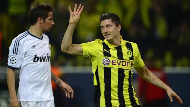 Голы: Дортмунд Роберт Левандовски 8 , 50 , 55 , 67 (пенальти ) минуты Реал Мадрид Кристиано Рональдо 43 минута