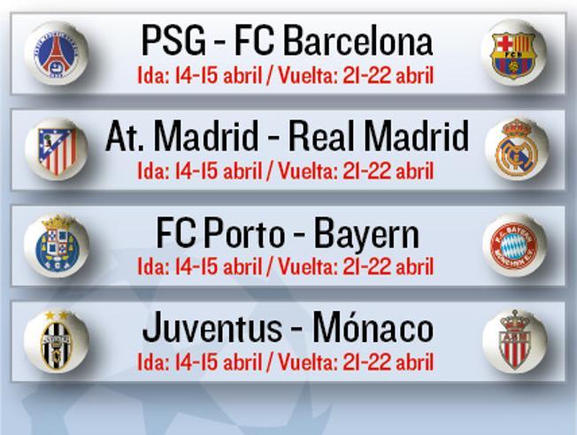 Состоялась жеребьевка 1/4 Лиги Чемпионов Champions League сезон 2014-2015. Реал Мадрид попал на Атлетико Мадрид, два матча Дерби Мадриленьо Derbi Madrileño пройдут в Мадриде 14 и 22 апреля 2015 года.