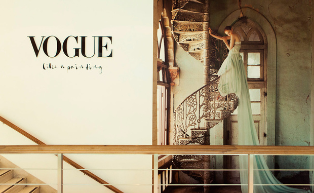 На выставке «Vogue like a painting» представлены фотографии журнала «Вог Vogue», которые напоминают портреты, пейзажи, натюрморты, интерьеры написанные знаменитыми художниками.