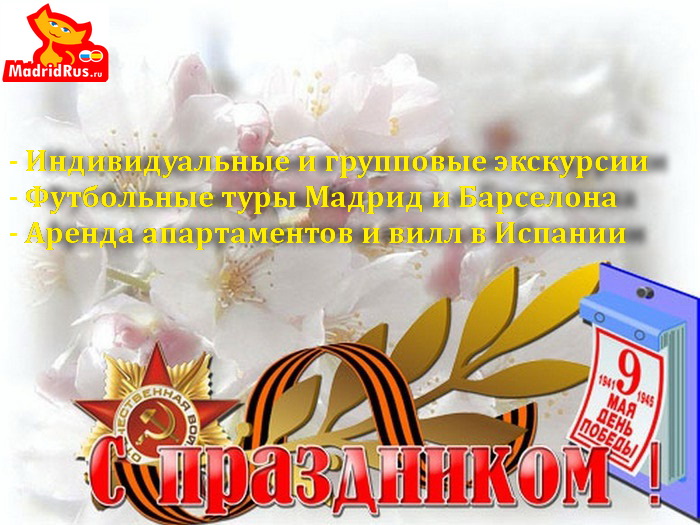 Поздравляем всех наших клиентов и партнеров (а также будущих клиентов и партнеров) с Наступающими Майскими Праздниками , С Праздником 9 мая, Днем Победы!!! Примите поздравления от МадридРус MadridRus!!!