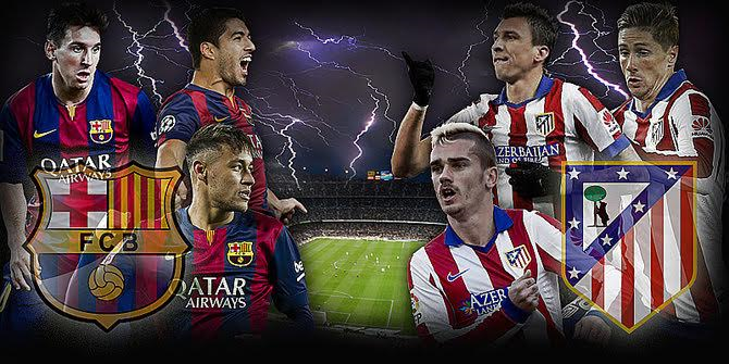 Первый матч Атлетико Мадрид Atlético de Madrid — ФК Барселона FC Barcelona состоится в Мадриде на Висенте Кальдерон Vicente Calderón ( 1 февраля 2017 года начало 21.00 )