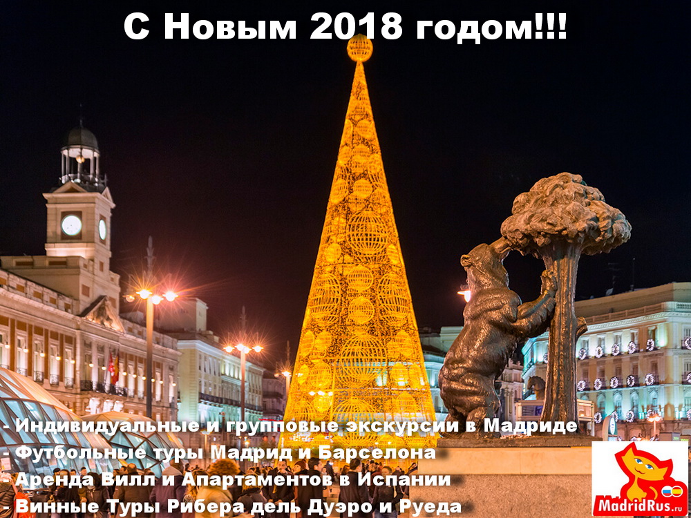 Турфирма «МадридРус MadridRus» поздравляет всех своих клиентов и партнеров с Наступающими Новогодними Праздниками !!! С Новым 2018 годом !!! С Католическим и Православным Рождеством !!! Желаем здоровья , хорошего настроения в Новом Году, увлекательных и приятных путешествий , мы всегда ждем вас в Мадриде и Испании!!!