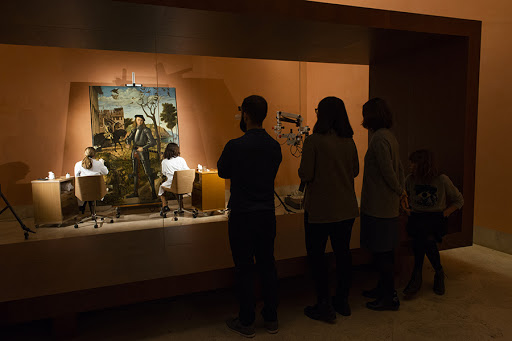 На выставке вы сможете увидеть уже отреставрированную картину , а также процесс реставрации , какие материалы использовались, какие исследования проводились, все это вы сможете узнать посмотрев фильм в зале номер 11 Музея Тиссен-Борнемиса.