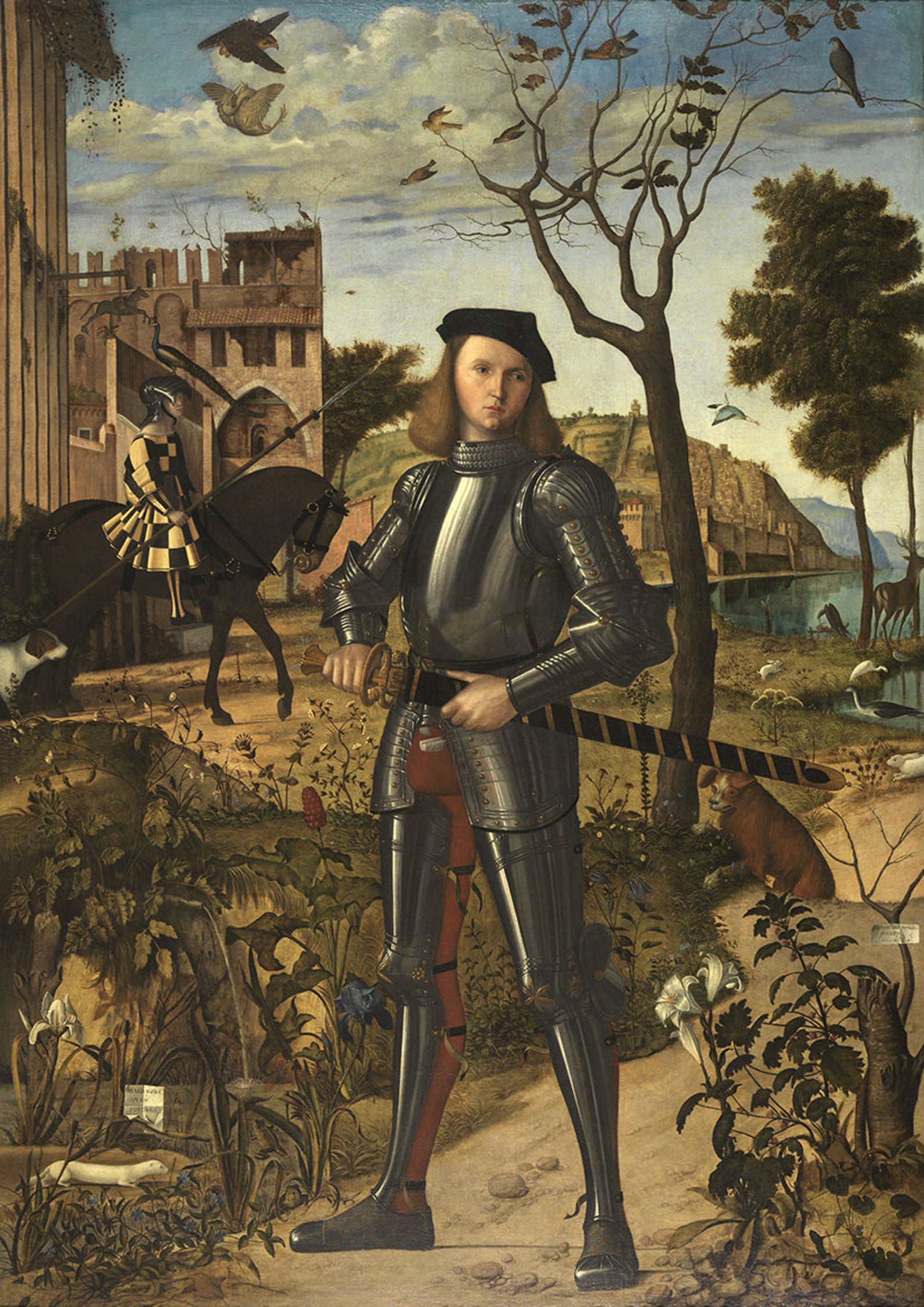 Главная загадка картины , какой рыцарь изображенна на полотне?! Начиная с XVI века спор по этому поводу не прекращается, точно известно , что рыцарь принадлежал к «Ордену Горностая», их девиз был обнаружен ввиде подписи «Malo mori guam foedari. Лучше смерть, чем бесчестье.