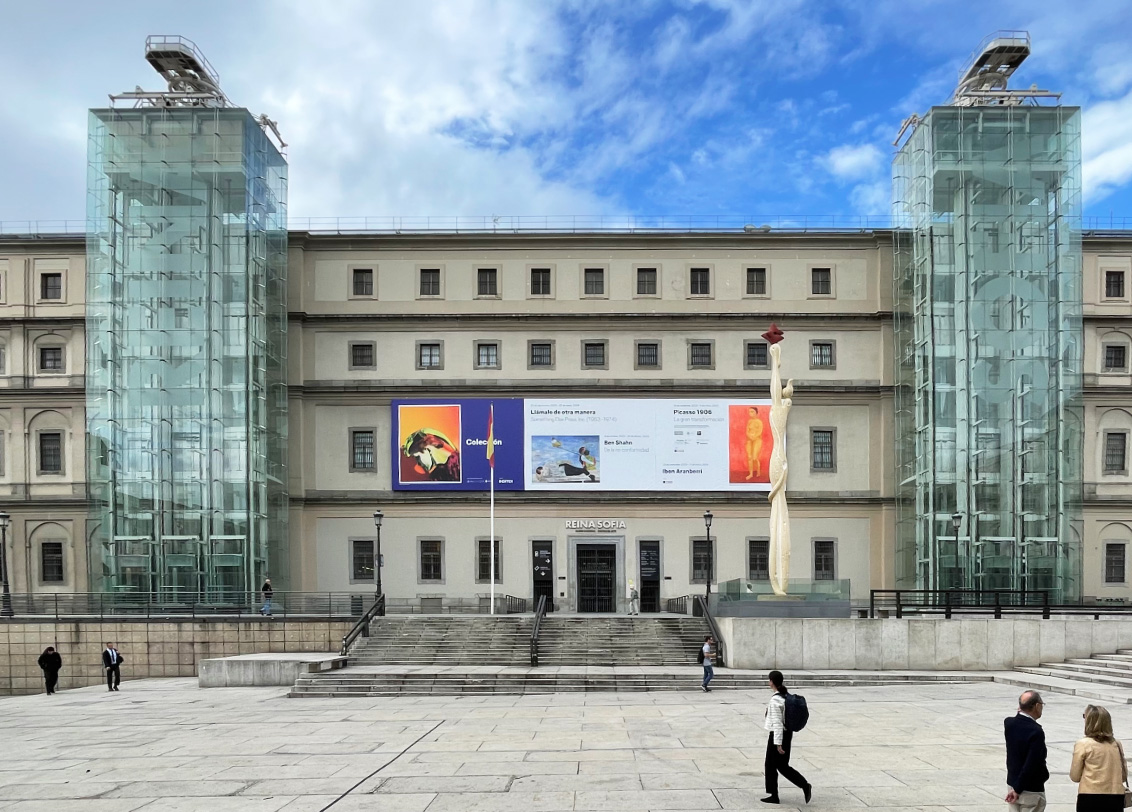 Каждую среду и субботу в 15.00 мы проводим групповые экскурсии в Музей Современного Искусства Королевы Софии , начало экскурсий напротив касс музея , у стеллы с красной звездой. Индивидуальные экскурсии мы предлагаем в удобное для вас время.
