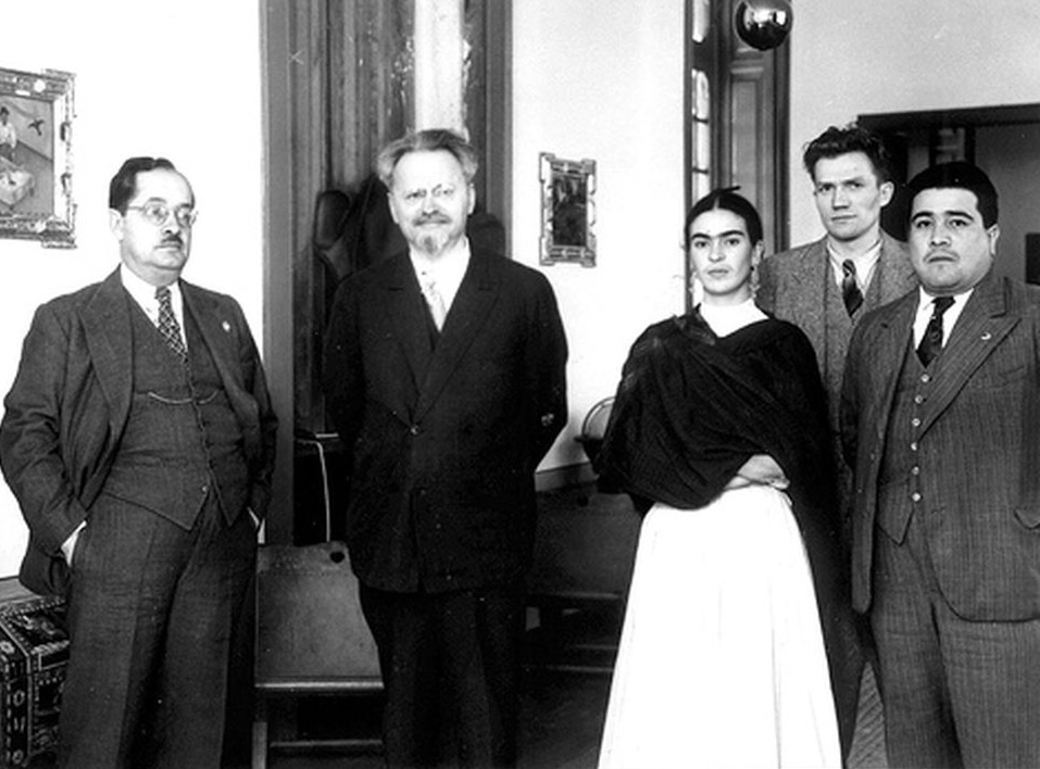 Вернемся к жене Диего, Фриде Кало, есть версия, что у нее был роман с Львом Троцким , помимо политических симпатий, Фрида, как и Диего была членом Коммунистичемного Партии Мексики , она уделяла много внимания семье Троцкова , Льву и его жене Наталье Седовой. Троцкому она даже подарила свой автопортрет , эту картину иногда называют «Между занавесками», в руках Фрида держит поздравление, написанное для Троцкого , в день его рождения 7 ноября 1937 года .