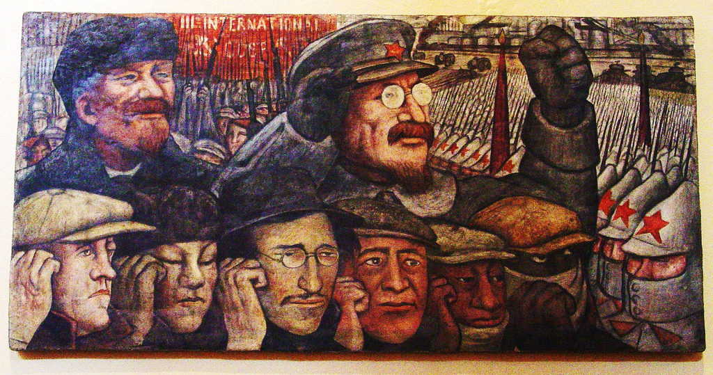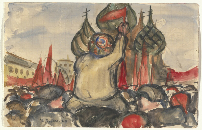 Особенно стоит отметить левые взгляды Диего Риверы, в 1922 году он вступил в Коммунстическую Партию Мексики , в 1927 году он был в Москве на праздновании 10-я Октябрьской Революции , общался с интелегенцией СССР , написал портреты Ильи Эренбурна, Максимилиана Волошина , Владимира Маяковского … И без сомнений общался с политическим руководством , и спецслужбами . Сначала Диего был за Сталина, потом за Троцкого, потом опять за Сталина , возможно он заманил Троцкого в Мексику, где его убили, а есть предположение, что, наоборот, спасал и уговорил Президента Мексики Ласаро Карденаса предоставить Троцкому политическое убежище , сказать сложно, но его жена Фрида Кало , в 1940 году попала в тюрьму по обвинению в организации убийства Льва Троцкого. Она была знакома с Рамоном Меркадером, убийцей Троцкого, еще за год до убийста, они познакомились в Париже в 1939 году, это было главной уликой, но доказать ничего не удалось и ее отпустили.